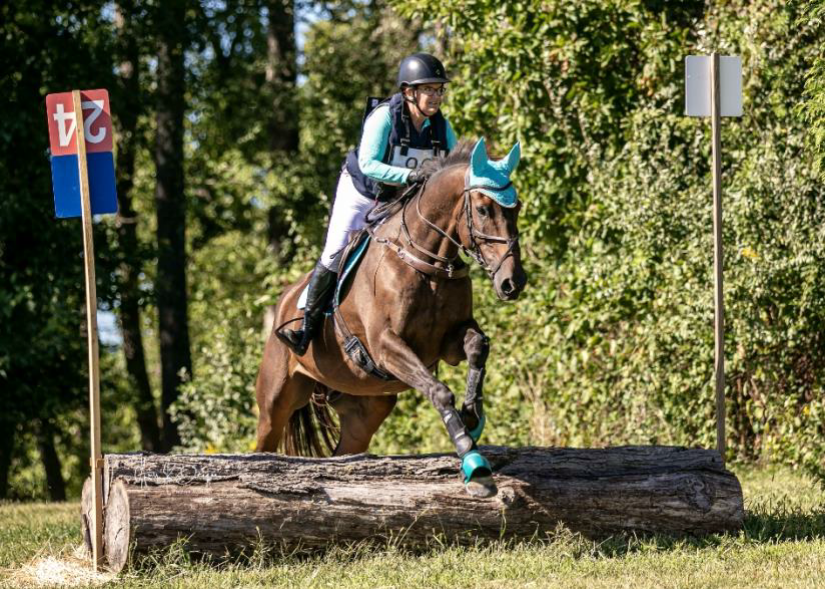 Harper was 5 when we imported him. and having been an accomplished show jumper, needed some training in cross country and needed to be introduced to the dressage arena. They started at Beginner Novice and Dana eventually worked her way with him to run him at Modified at all sorts of venues in both Area 2 and 3. She ran him twice at the Waredaca Classic 3 Day event. That was a true highlight for both her riding him and me grooming for them. She won “best conditioned horse” on him the first year that she rode him there! I have taken over the ride and have been eventing at the intro level with several dressage shows to add some variety. I tend to have show nerves, but he doesn’t mind at all. He is such a steady eddy. He is so chill anywhere he goes and always knows that is job is to take care of me.